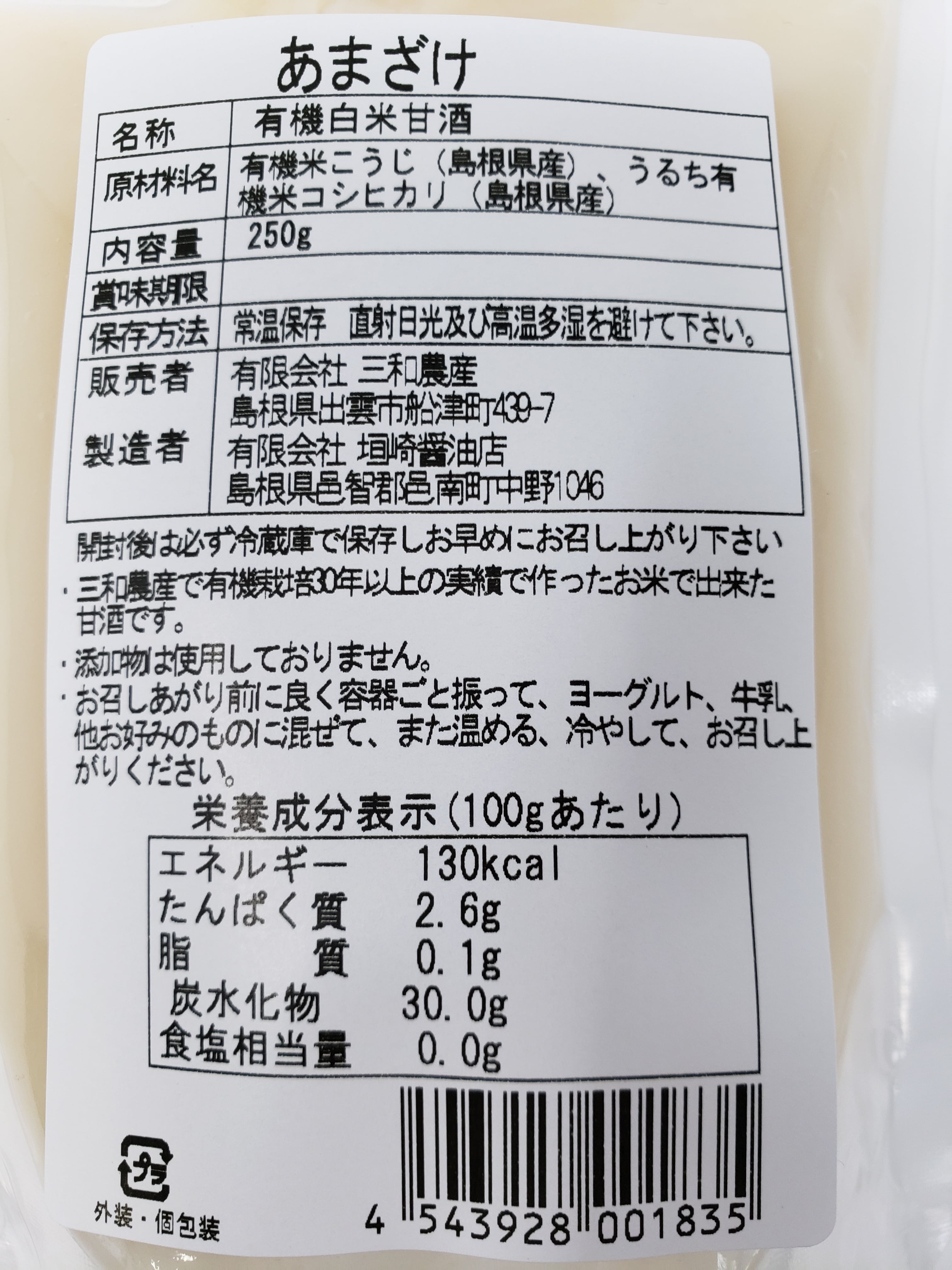 〇原材料・・・有機米こうじ(島根県産)、有機コシヒカリ(島根県産)